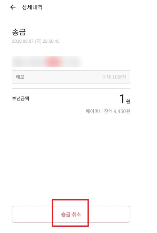 상세내역란이 나오는데 송금취소를 누르면 끝난다!!